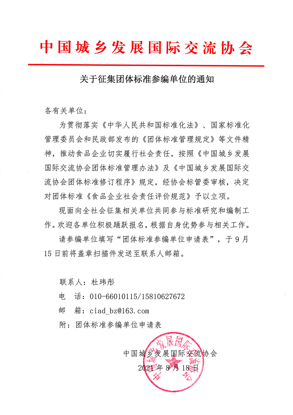 关于征集团体标准参编单位的通知